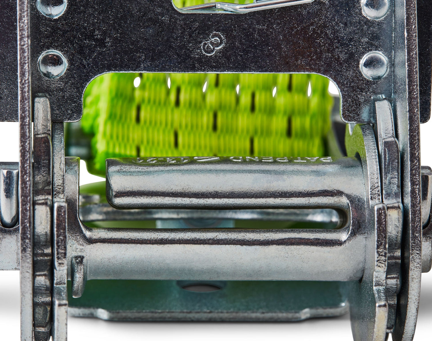Le nouvel axe innovant du cliquet permet une insertion latérale rapide de la sangle. Par conséquent, il n'est plus nécessaire de tirer toute la sangle à travers le cliquet lors de la sécurisation de la charge.